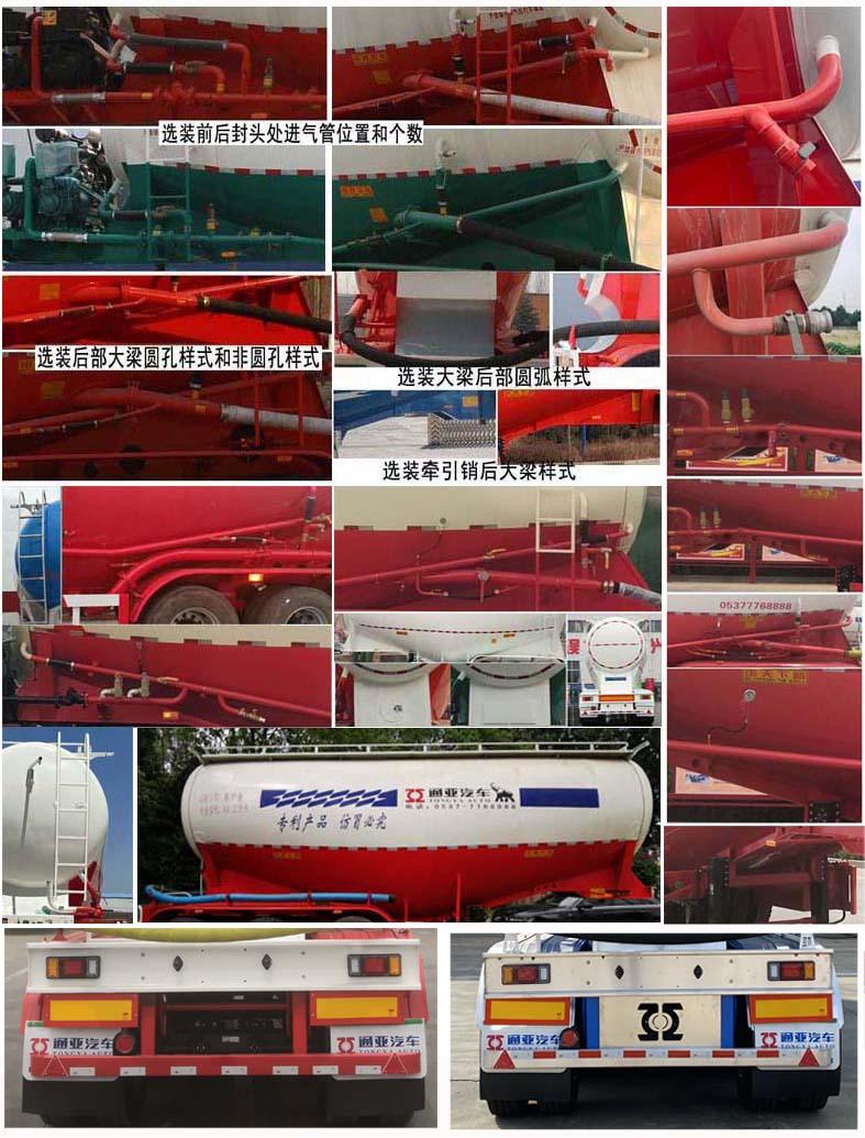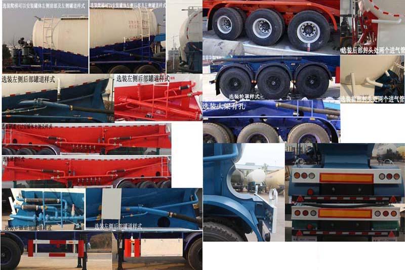 其它 | 罐體總?cè)萘繛?57立方米,罐體有效容積:54.8立方米;運(yùn)輸介質(zhì):煙煤粉,罐體尺寸(含封頭)長(zhǎng):11330mm,寬:2540mm,最大截面高度:3350mm(選裝罐體最大截面高度為:3450mm),前后封頭直徑:2010mm(選裝前后封頭直徑為:2110mm),選裝車輛前部不加裝機(jī)組,ABS系統(tǒng)生產(chǎn)廠家:廣州瑞立科密汽車電子股份有限公司,梁山順安達(dá)汽車科技有限公司,山東梁山德?tīng)柛F嚳萍加邢薰?型號(hào):CM2XL-4S/2K(4S/2M),SAD-ABS4S/2M,DEF-ABS4S/3M;側(cè)面及后下部防護(hù)裝置所用材料材質(zhì)為:Q235,側(cè)面及后下部防護(hù)裝置與車輛連接方式均為:螺栓連接或焊接,后部防護(hù)裝置的主要尺寸參數(shù):斷面尺寸(mm)為120×68,離地高度為:500mm.頂部封閉不可開(kāi)槽,后部不可開(kāi)啟.選裝燈具型號(hào)及后組合燈所在部件樣式.選裝大梁后部可以為弧形,選裝爬梯的安裝位置可以在罐體左側(cè)前部或后部或罐體后部,爬梯個(gè)數(shù)可以為一個(gè)或兩個(gè)或三個(gè),選裝輪罩樣式及鋁合金輪轂,選裝走臺(tái)樣式,選裝罐頂升降護(hù)欄,頂部可為擋水槽式也可為走臺(tái)式,選裝前后封頭處進(jìn)氣管位置和個(gè)數(shù),工具箱位置可選裝,選裝罐蓋個(gè)數(shù)及位置,選裝罐體管道的樣式,選裝大梁可以為鉆孔樣式,選裝牽引銷后大梁樣式,選裝下出料樣式,選裝爬梯安裝位置(前部/側(cè)面/后部),選裝后尾小工具箱樣式,選裝側(cè)面管道樣式,選裝機(jī)組樣式,選裝雙助吹樣式,選裝支腿連接件樣式,選裝外接氣源樣式,選裝壓力表安裝位置,選裝尾部標(biāo)志板安裝位置,選裝號(hào)牌板安裝位置,選裝雙邊支梁樣式,選裝機(jī)組樣式. |