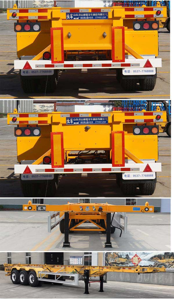 用于運輸一個40英尺集裝箱,牽引銷處車架高度為90mm,選裝牽引銷大梁高度為:120mm,150mm,170mm,180mm,190mm,194mm;選裝尾部標志板安裝位置,選裝正后樣式,選裝號牌板安裝位置,選裝車輛前部不加裝擋向塊,選裝后部燈具安裝位置,選裝輪罩樣式,選裝側(cè)防護樣式;ABS系統(tǒng)生產(chǎn)廠家:廣州瑞立科密汽車電子股份有限公司,梁山順安達汽車科技有限公司,廣州市西合汽車電子裝備有限公司,山東梁山德爾福汽車科技有限公司,型號:CM2XL-4S/2M,SAD-ABS4S/2M,XH-GQ4S2M-E01,DEF-ABS4S/3M ;側(cè)面及后下部防護裝置所用材料材質(zhì)均為:Q235,側(cè)面防護裝置與車輛連接方式為:螺栓連接,后部防護裝置與車輛連接方式為:焊接,后部防護裝置的主要尺寸參數(shù):斷面尺寸(mm)為140×40,離地高度為:480mm. |